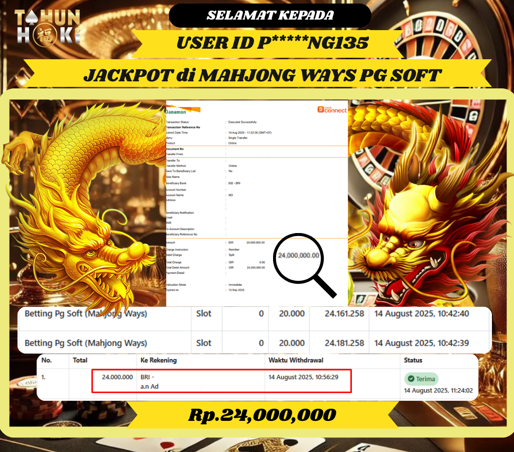 TAHUNHOKI MENANG MAHJONGWAYS PG SOFT Rp. 24,000,000,- LUNAS
