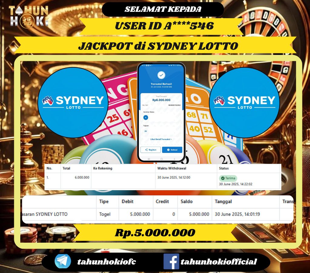 TAHUNHOKI MENANG TOGEL SYDNEY LOTTO Rp. 5,000,000,- LUNAS
